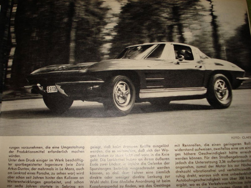 Nur, dass es sich hier zweifelsfrei nicht um einen solchen handelt. Tatsächlich bildete der Testbericht einer Corvette „Split Window“ aus Auto Motor und Sport (Ausgabe 15/1963) Basis der künstlerischen Bearbeitung.